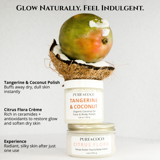 Our research-backed 2-Step Skincare Routine combines the power of the Organic Coconut Oil Face & Body Polish and Mango Butter Face & Body Crème to restore a healthy, resilient skin barrier.